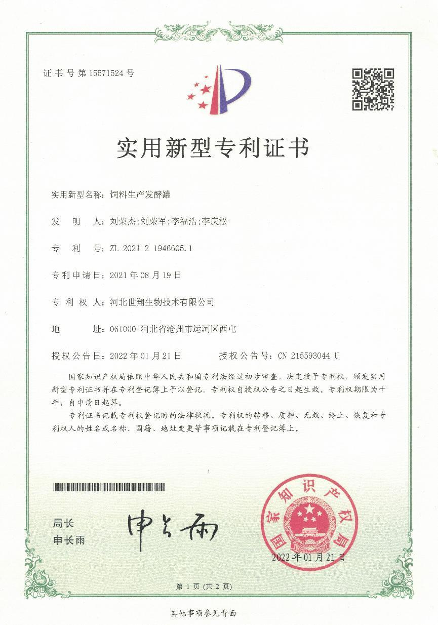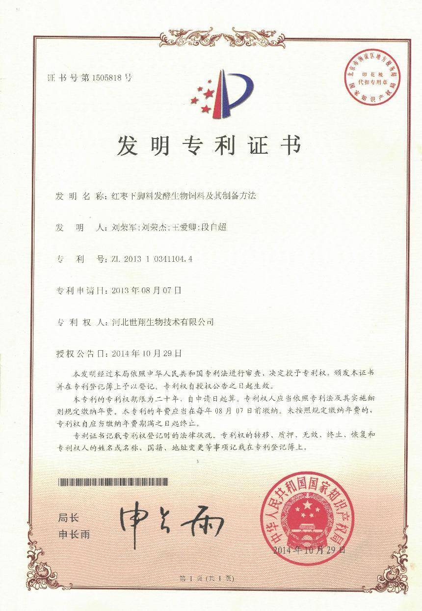 公司率先在同行業(yè)中引進全自控發(fā)酵設備,分別承擔過國家,省,市級科研項目并順利通過專家驗收,我公司于2016年被認定為國家高新技術企業(yè),滄州市農業(yè)產業(yè)化重點龍頭企業(yè),滄州市農業(yè)新技術協(xié)會會員副會長單位等,公司獲得發(fā)明專利一項《紅棗下腳料發(fā)酵生物飼料及其制備方法》和實用新型專利六項 亞洲歐美一區(qū)二區(qū)三區(qū)四區(qū)。